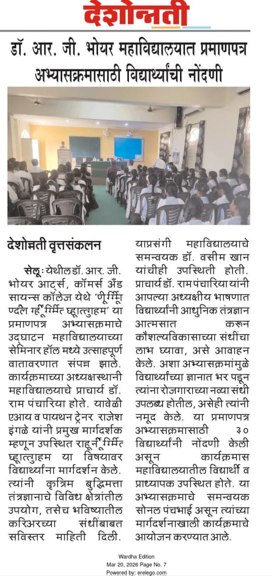 Dr. R. G. Bhoyar Arts, Comm. & Sci. College, Seloo (Vidyabharti College)